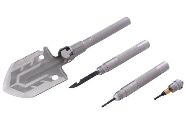 Многофункциональная лопата Рамболд M2 состоит из 8 частей, с помощью которых вы можете: копать ямы, резать ветки, закручивать гайки, открывать бутылки, а также она станет вашей палочкой-выручалочкой в случае чрезвычайной ситуации или аварии в машине, поскольку с ее помощью можно разбить стекло.